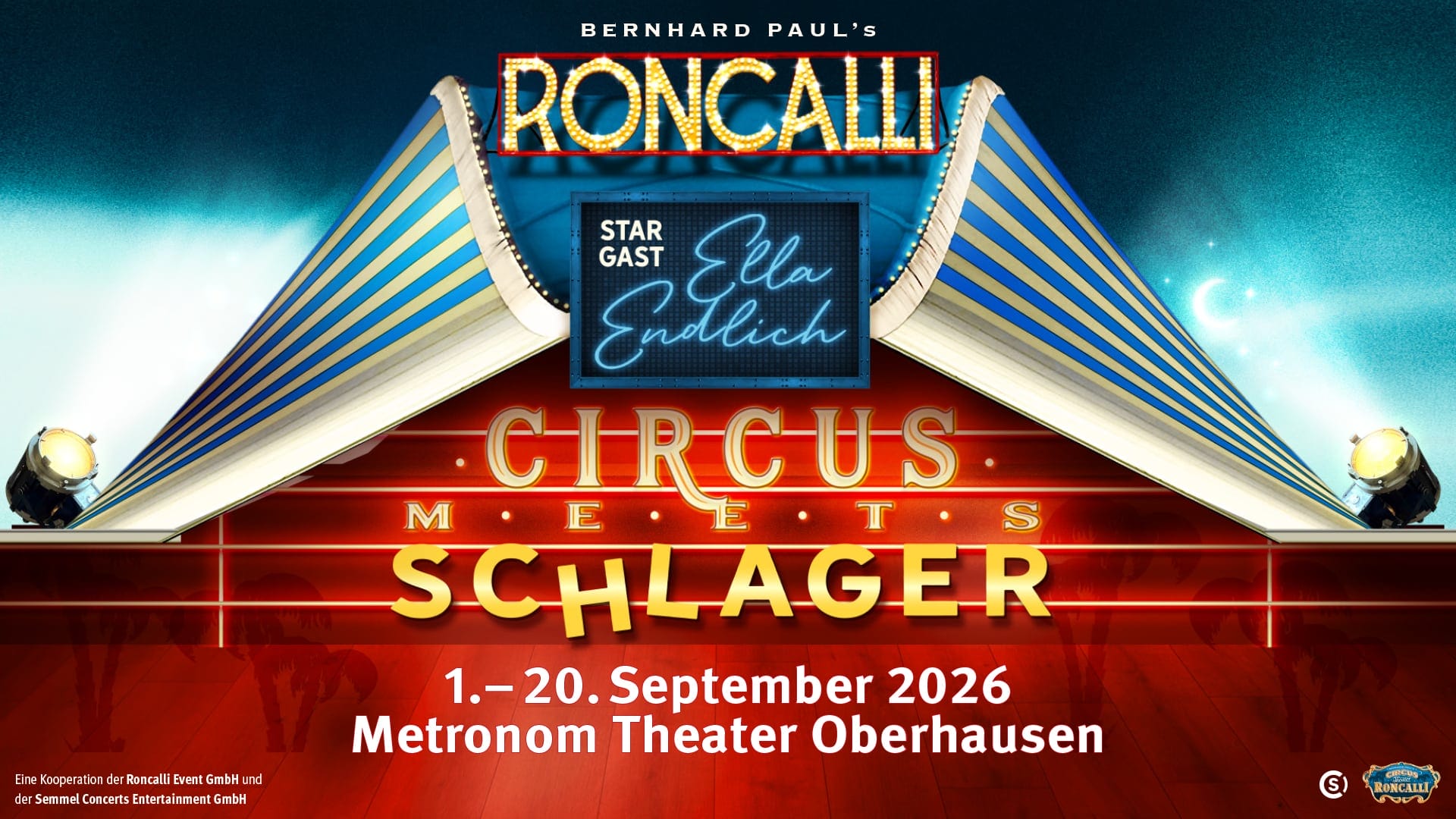 Der weltbekannte Circus Roncalli begeistert seit Jahrzehnten Millionen von Menschen mit seiner einzigartigen Mischung aus Poesie, Artistik und nostalgischem Zauber. Unter der kreativen Leitung von Gründer und Direktor Bernhard Paul erfindet sich Roncalli immer wieder neu – mit außergewöhnlichen Ideen, die die Grenzen des klassischen Circus auf faszinierende Weise erweitern. Nun schlägt Roncalli ein neues Kapitel seiner Erfolgsgeschichte auf: Mit der exklusiven Show „Circus meets Schlager“ zieht der legendäre Circus ins Metronom Theater Oberhausen und verbindet brillante Circuskunst mit der mitreißenden Welt des deutschen Schlagers.