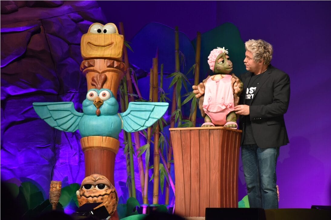 Ab auf die Insel heißt es im aktuellen Stück von Sascha Grammel. Im „Fluch der Karibik“-Style legt der Star mit seiner Puppe Frederic Freiherr von Furchensumpf los – und die Zuschauer erleben ein urkomisches Wortgefecht. Es folgt Socke Rüdiger, wo Grammel seiner Puppe mal eben ausversehen den Arm abnimmt – das passiert selbst einem Profi. Humorvoll überspielt er die Szene, das Publikum feiert den Selbsthumor.