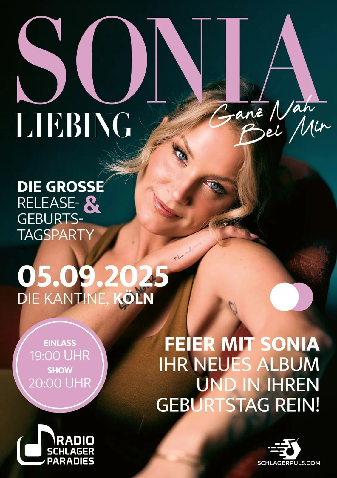 Während der Sommer aktuell etwas Pause macht, geht es in Sonias neuem Song zweifellos heiß her! Kochen wird in wenigen Wochen derweil auch die Kantine in Köln, denn: Am 05.09.25 gibt die Schlagersängerin ihr Release- und Geburtstagskonzert in der Location! Dann werden Fans neben „Komm und tu’s“ noch weitere Titel aus dem Album, das neben Petra Bonmassar mit Tim Peters und Christian Geller entstand, live erleben. Tickets gibt es aktuell noch DIREKT HIER!